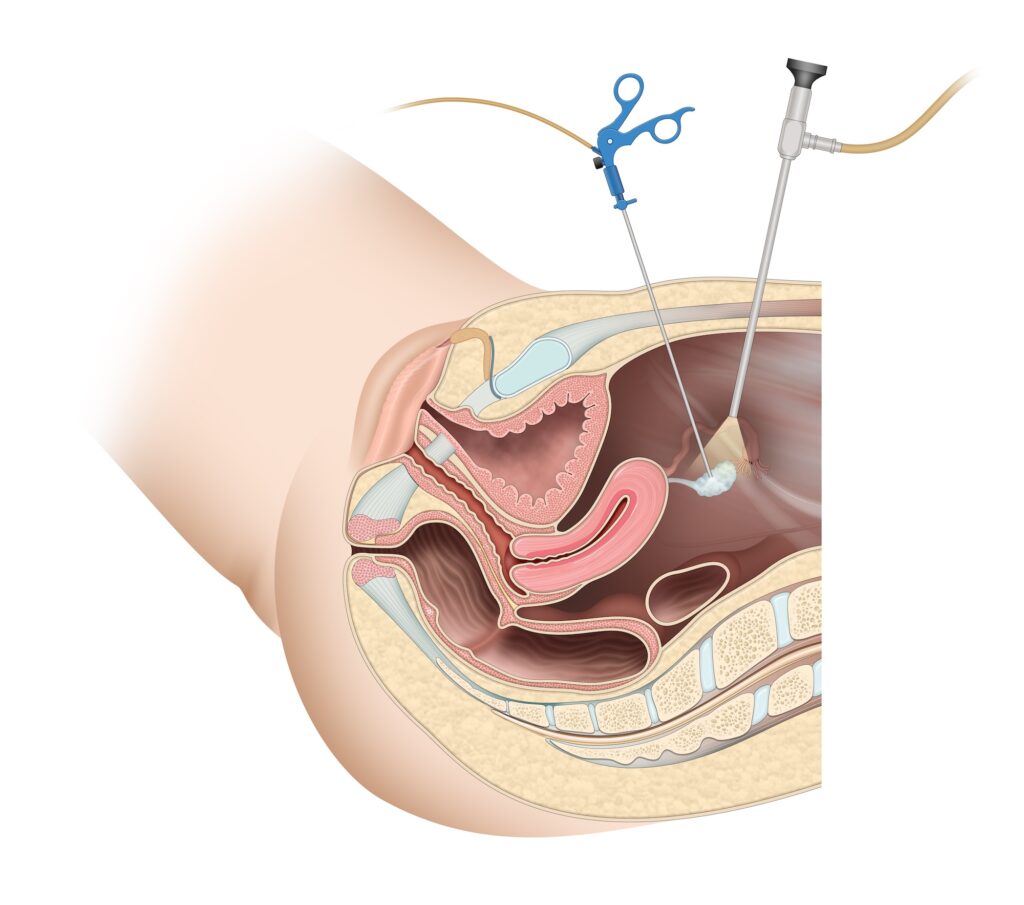 Με τη βοήθεια ειδικών εργαλείων και κάμερας υψηλής ευκρίνειας, ο γυναικολόγος μπορεί να εξετάσει και να χειρουργήσει τα όργανα της κοιλιάς και της πυέλου μέσα από πολύ μικρές τομές στο δέρμα, μεγέθους 0.5 έως 1 εκατοστού.